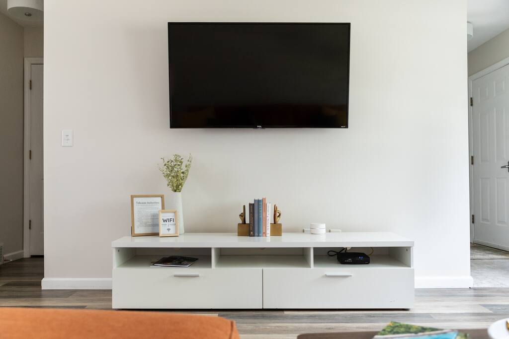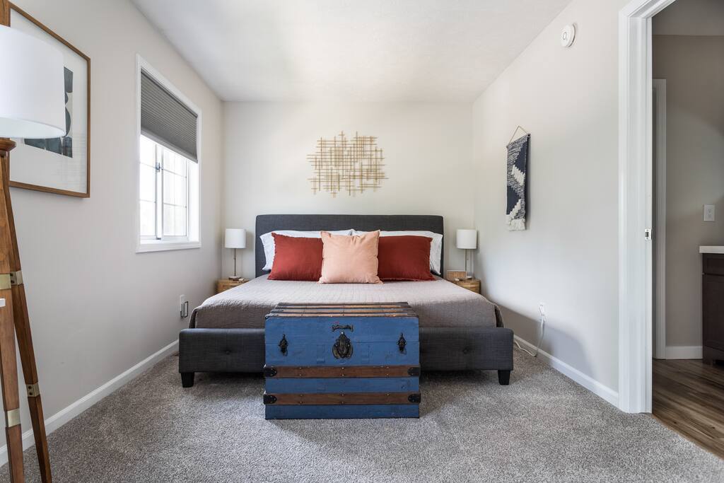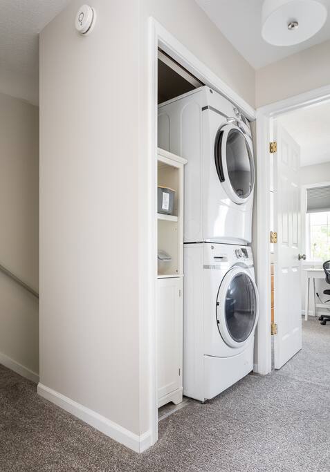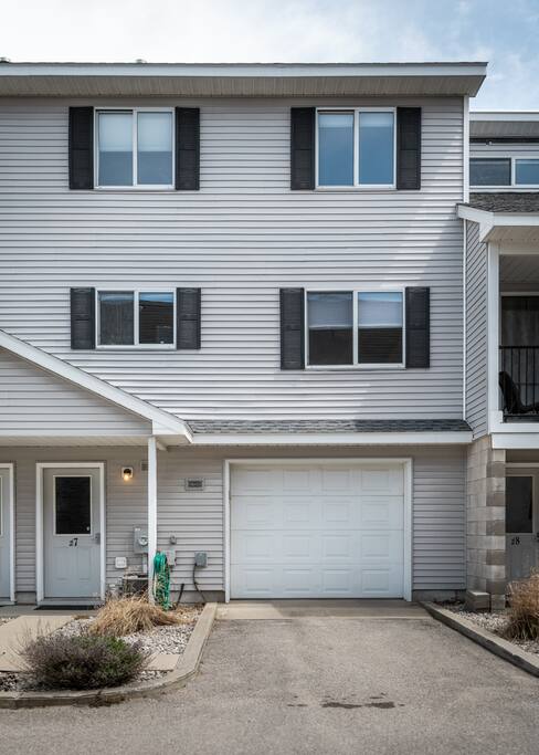 Rest comfortably in three bedrooms, featuring a King, Queen, and a full size bed, complete with provided bed linens and bath towels. The master bedroom includes a desk and TV for your convenience. An in-unit washer and dryer are available with the essential supplies fully stocked. One dedicated parking spot is available in the garage, with space for another vehicle right behind it. Street parking is also available in the summer months.