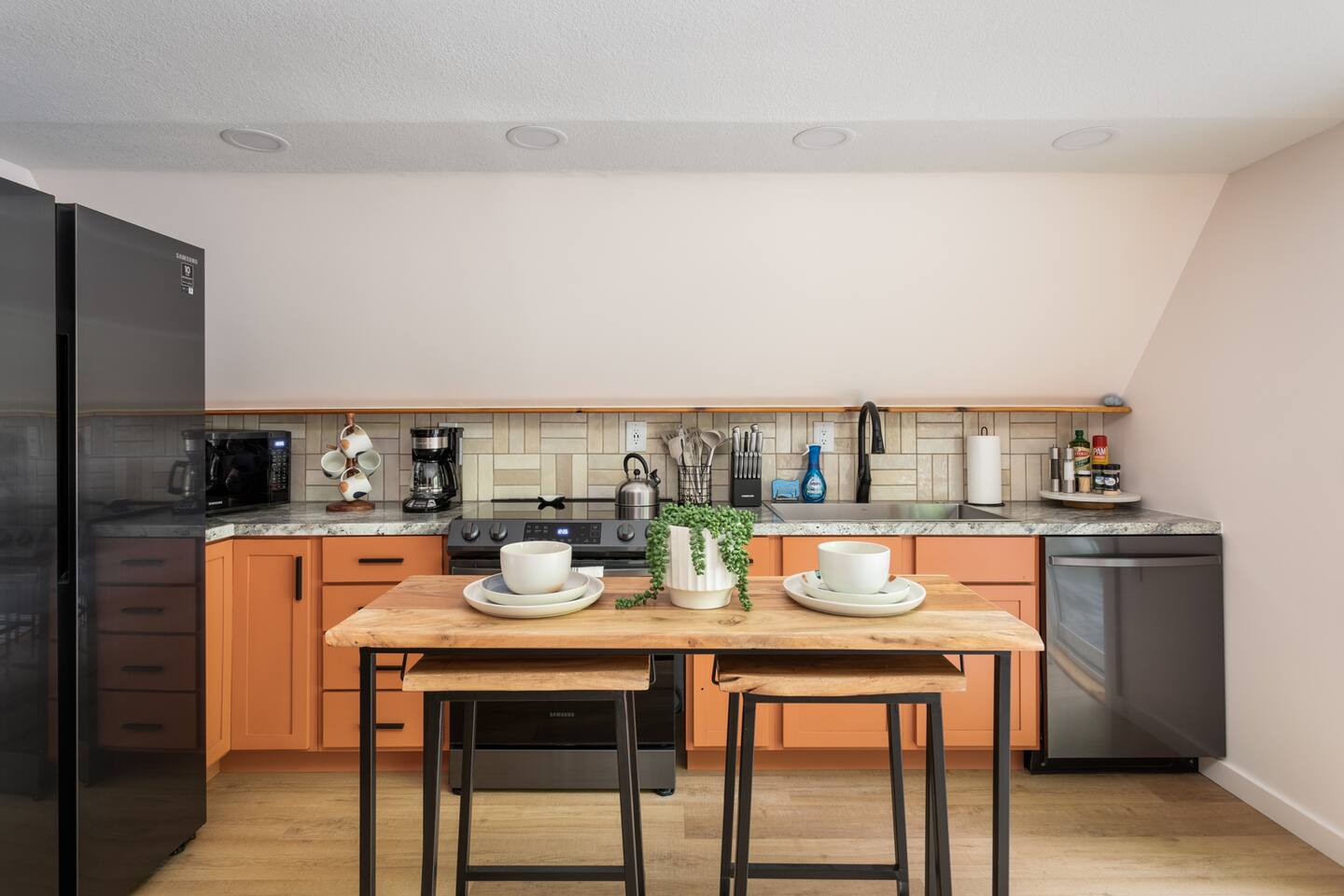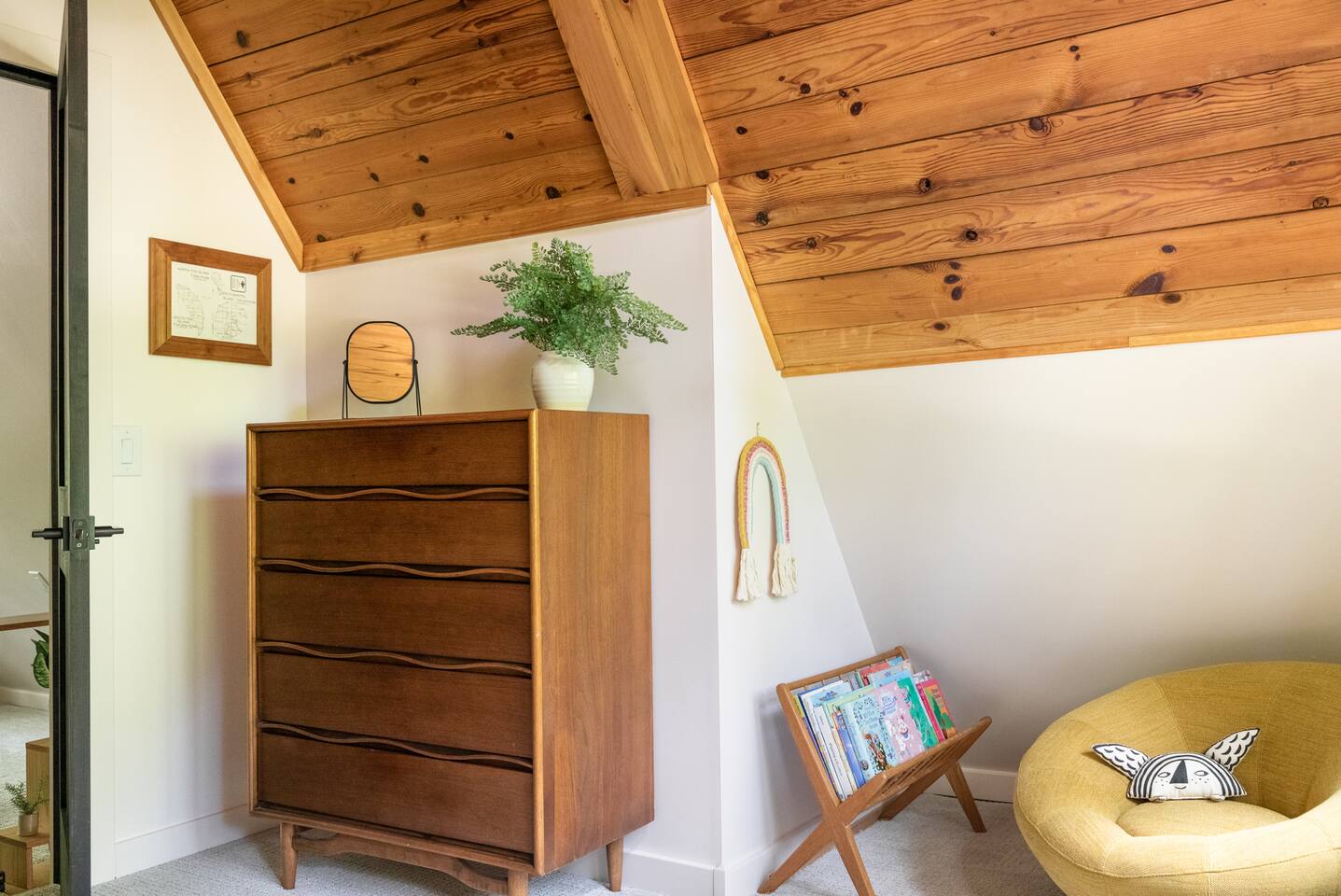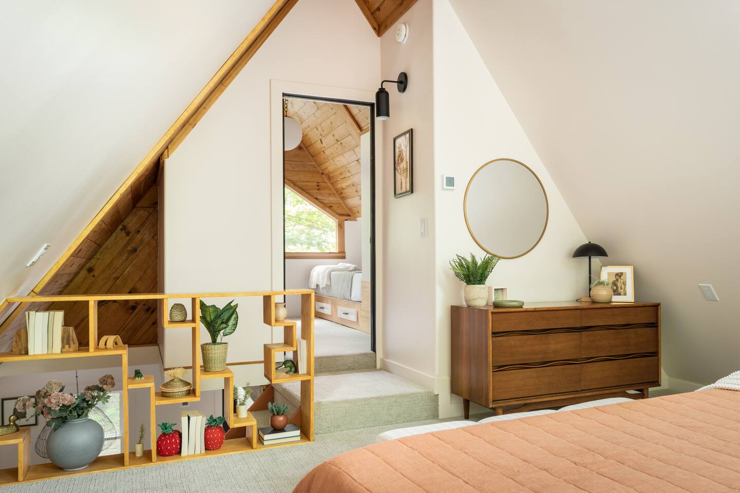 Welcome to our charming A-frame cabin, a stylish and comfortable getaway we renovated from the ground up. The space is designed for relaxation and comfortably accommodates up to four guests. // Sleeping Arrangements: - Main Bedroom: Luxurious king-size bed, TV, and a sound machine for a restful night. - Loft: Two cozy built-in twin beds, also equipped with a sound machine. // Living & Amenities: - Living Area: Cozy space to relax on the main floor. - Kitchen: Fully equipped with a dishwasher, coffee maker, and everything needed for meal preparation. - Bathroom: Stylish design with a double vanity. - Laundry: In-unit washer and dryer for your convenience. - Climate Control: Mini-split heating and air conditioning for year-round comfort. // Family-Friendly Features: - Pack 'n Play - Children's books, toys, and dinnerware // Outdoor Oasis: - Expansive deck with a large, private outdoor space. - Year-round hot tub. - Firepit for evening gatherings. - Charcoal grill for outdoor cooking.