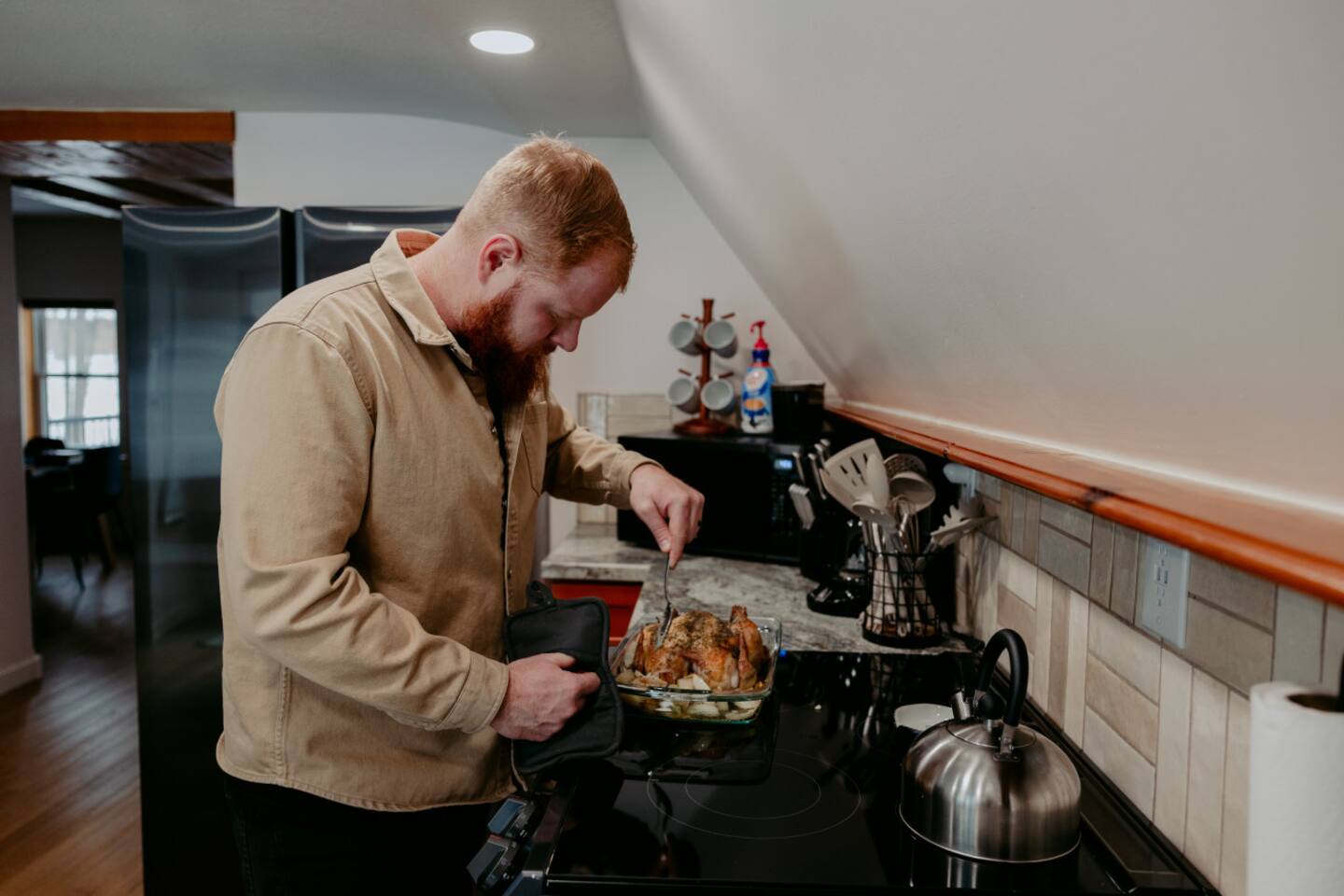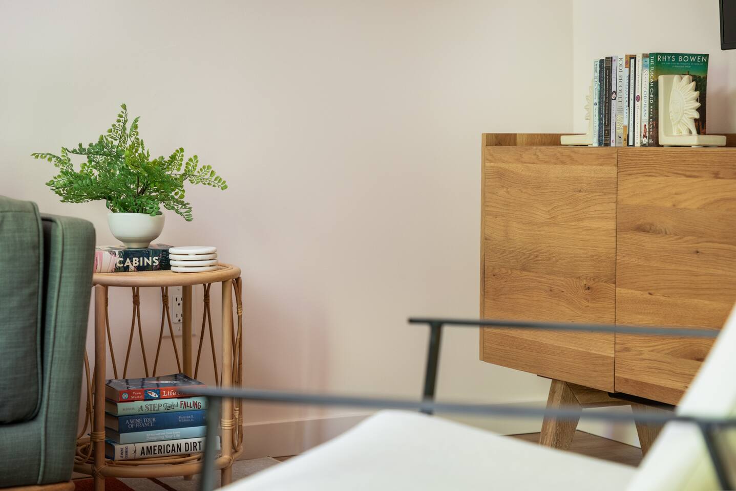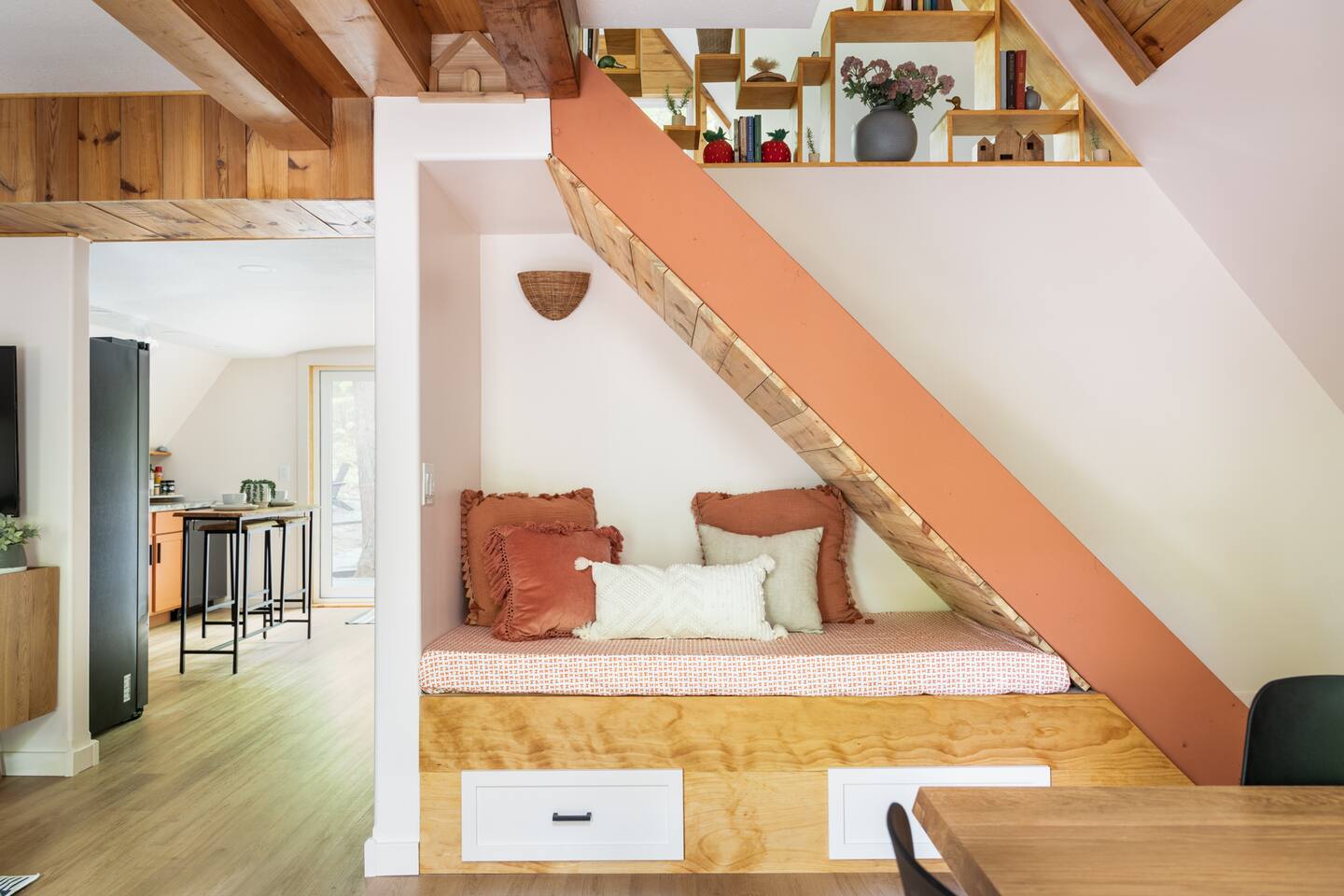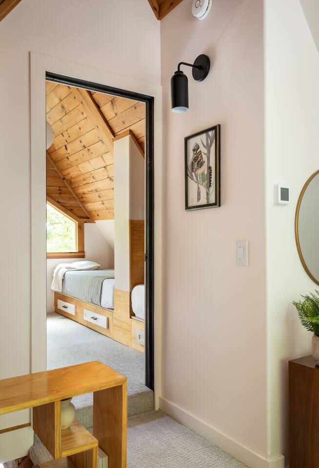 Welcome to our charming A-frame cabin, a stylish and comfortable getaway we renovated from the ground up. The space is designed for relaxation and comfortably accommodates up to four guests. // Sleeping Arrangements: - Main Bedroom: Luxurious king-size bed, TV, and a sound machine for a restful night. - Loft: Two cozy built-in twin beds, also equipped with a sound machine. // Living & Amenities: - Living Area: Cozy space to relax on the main floor. - Kitchen: Fully equipped with a dishwasher, coffee maker, and everything needed for meal preparation. - Bathroom: Stylish design with a double vanity. - Laundry: In-unit washer and dryer for your convenience. - Climate Control: Mini-split heating and air conditioning for year-round comfort. // Family-Friendly Features: - Pack 'n Play - Children's books, toys, and dinnerware // Outdoor Oasis: - Expansive deck with a large, private outdoor space. - Year-round hot tub. - Firepit for evening gatherings. - Charcoal grill for outdoor cooking.