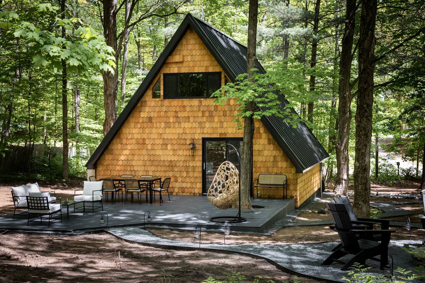 Escape to our meticulously renovated A-frame cabin in the woods, perfect for 4 guests. This stylish haven features a king bed, loft with twin beds, a year-round hot tub, and a firepit. Located just 10 minutes from Lake Ann and Interlochen, it's the ultimate serene getaway. Enjoy modern comforts like a full kitchen and A/C in a rustic, private setting.