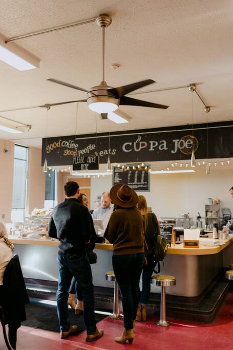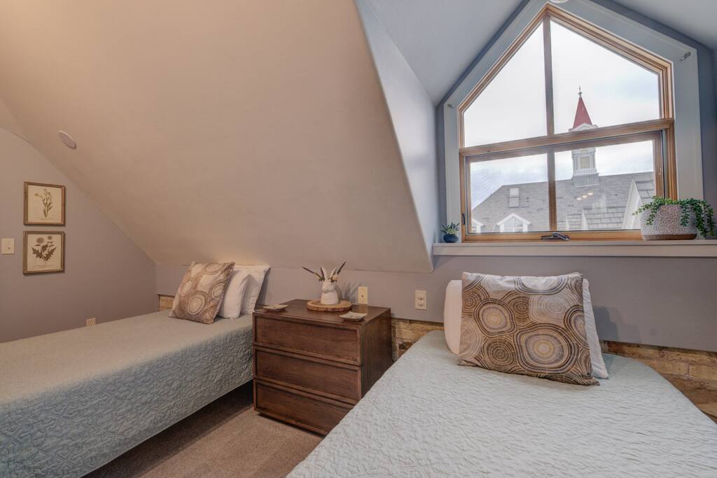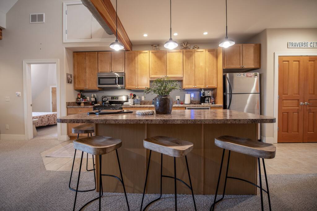 We have one master bedroom with a comfortable king-sized bed, a TV, and an en-suite master bathroom. The second bedroom located on the main floor includes two twin beds, with additional space for a pack-n-play. The upstairs loft bedroom is open to the downstairs common area and features another comfortable king-sized bed. During your stay, explore the charming village, located a mere mile from the bay and downtown. The garden level boasts a variety of on-site amenities, including restaurants and shops that cater to both fine dining and quick bites. Within the Grand Traverse Commons building or its scenic grounds, you'll find: - PepeNero - Spanglish - Pleasanton Bakery - Higher Grounds - Red Spire - Earth & Ales - S2S (Salt to Sugar) - Left Foot Charlie - Trattoria Stella - Cuppa Joe - Seasonal Farmers Market - Unique boutique shops Consider enhancing your stay with a guided tour of The Village: - Guided Historic Walking Tour - Asylum Twilight Tour - *NEW* Golf Cart Tour - Taste of the Village Guided Tour - Semi-Guided Tripod Photography Tour (for all you shutterbugs!) For your convenience, the condo features an in-unit washer and dryer; common space laundry facilities are also available.