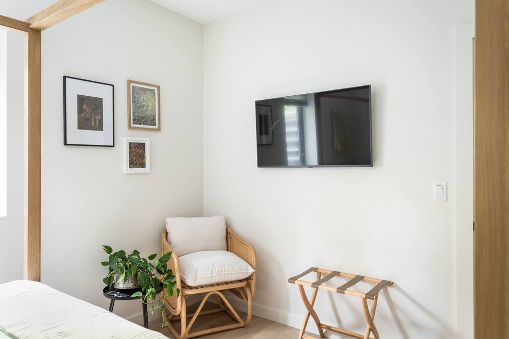 Nestled among the tranquil woodlands of East Bay, this contemporary residence offers an idyllic setting for your next getaway. Situated just east of downtown Traverse City, it places you within a convenient 5 min drive of Mt. Holiday, the VASA Trail, and Timber Ridge, while downtown TC is a mere 15 minutes away. Additionally, you'll find many local breweries, pizzerias, and grocery stores nearby. If cool design, wild siding choices, and a super comfy layout are your jam, book The Holiday House.