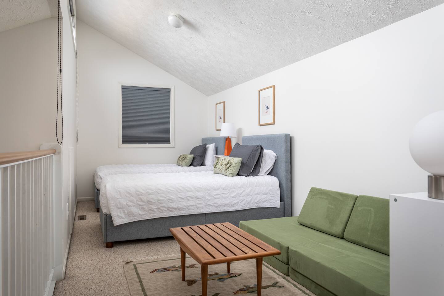 Welcome to your charming Trailside Townhouse, the ideal home base for your Northern Michigan adventure! This modern space is designed for comfort and relaxation for up to six guests. * Living Area: Unwind on cozy seating and enjoy your favorite shows on the 42-inch HDTV with streaming services. Step out onto your private patio or balcony for a morning coffee. * Bedrooms & Sleeping Arrangements: * Bedroom 1: Queen-sized bed * Bedroom 2: Queen-sized bed * Sleeping Loft: Two twin beds * All bed linens and bath towels are provided. * Kitchen: A full-size, well-stocked kitchen with essentials like spices, condiments, pots, and pans, ready for you to prepare delicious meals. * Workspace: A dedicated workspace and fast Wi-Fi make it easy to stay connected for remote work or planning your trip. * Amenities: An in-unit washer and dryer with supplies are available for your convenience.
